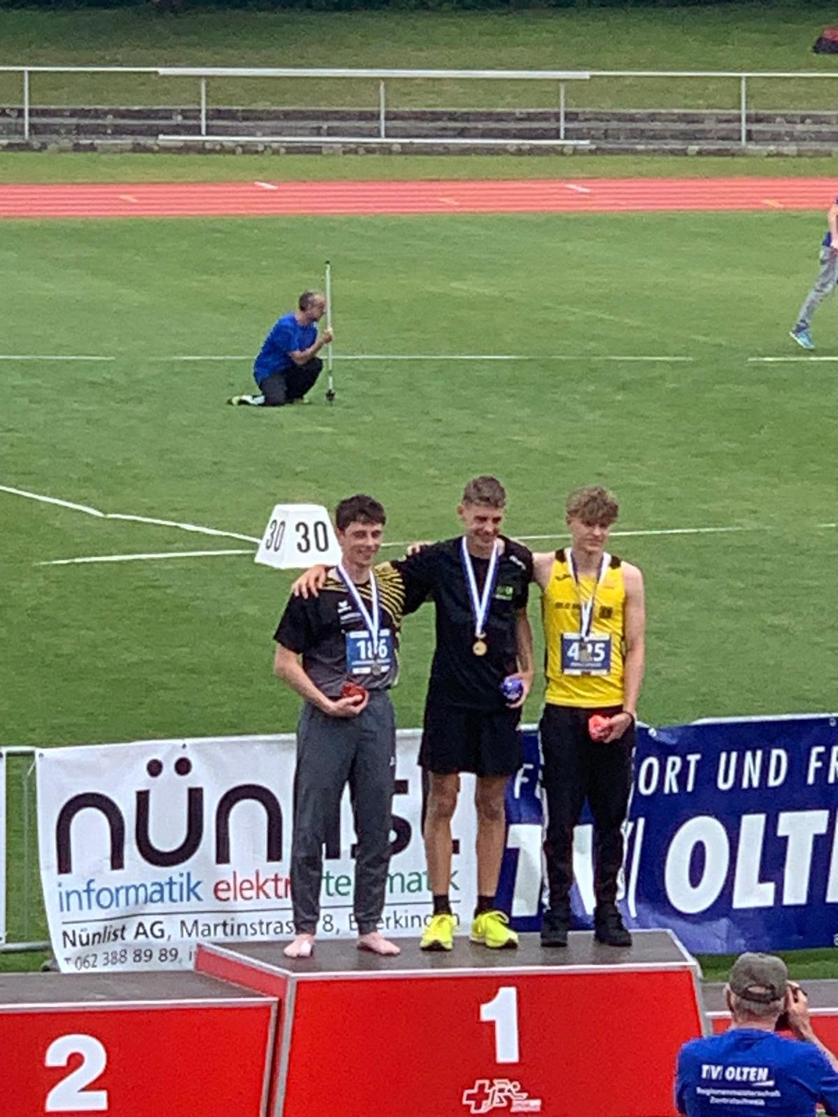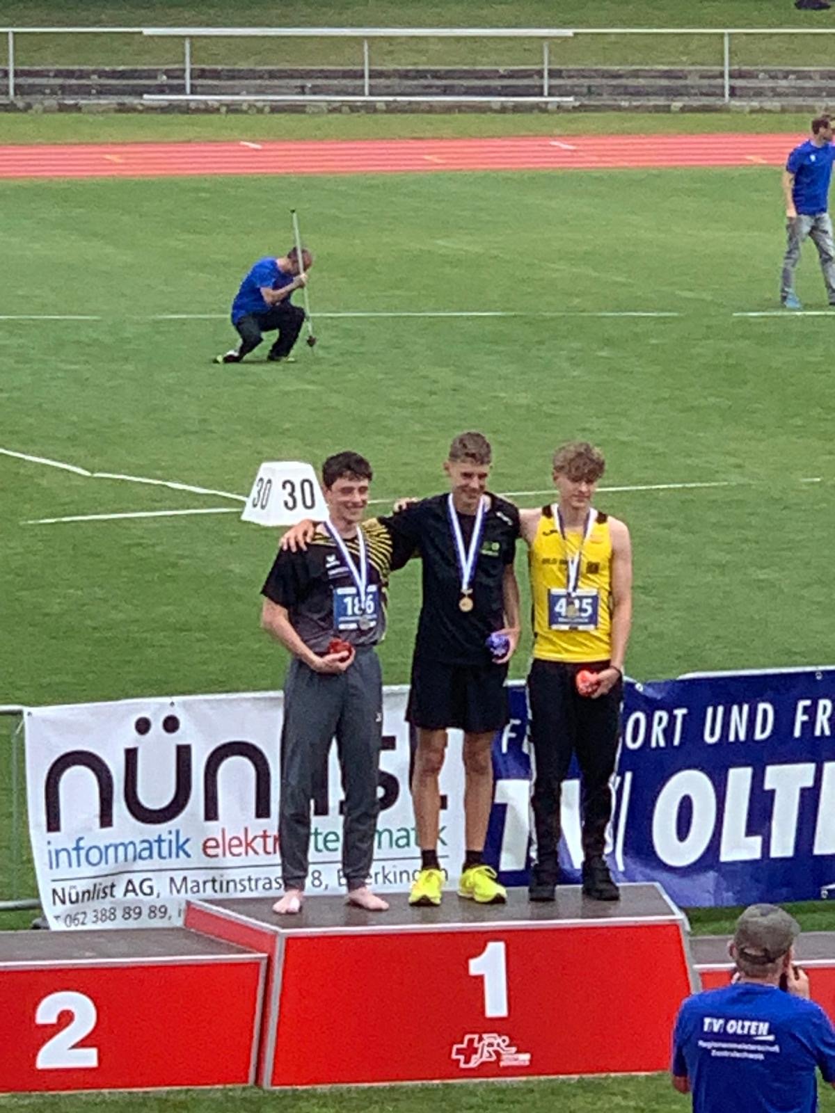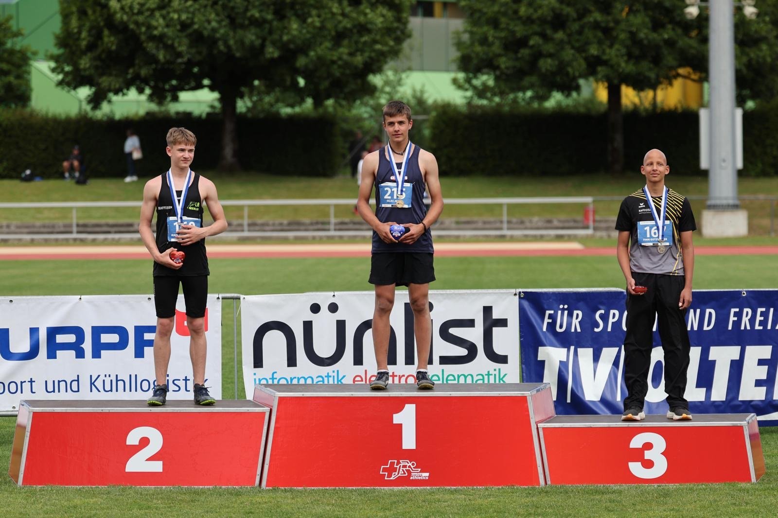 Raphael Brand (U18M-400 m), Leonhard Herrlich (U18M-Diskus), Feline Heemstra (U14W-60 m Hürden), Fiona Sprecher (U16W-600 m), Marvin Gutzwiller (U18M-Stab), Finn Gutzwiller (U14M-Kugel) und Lion Baumgartner (U16M-80 m)
