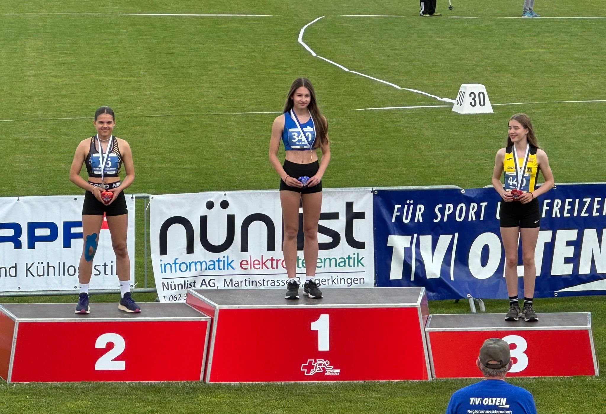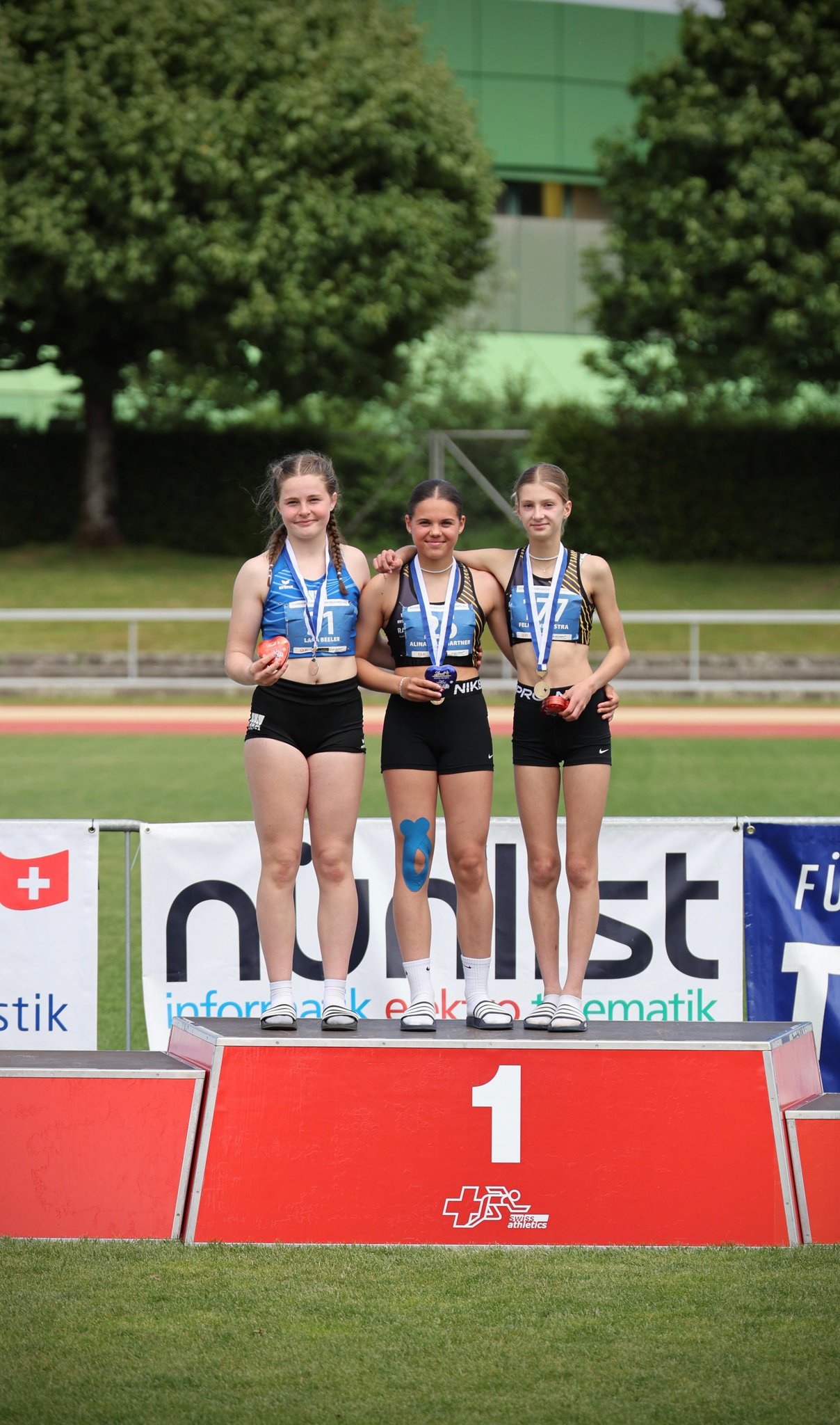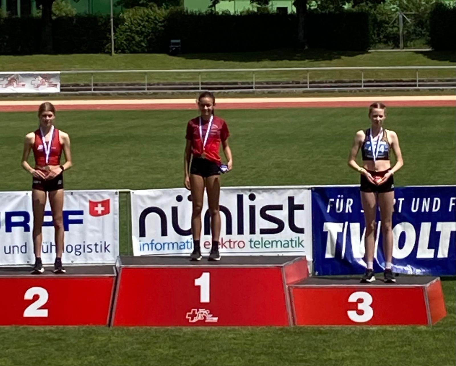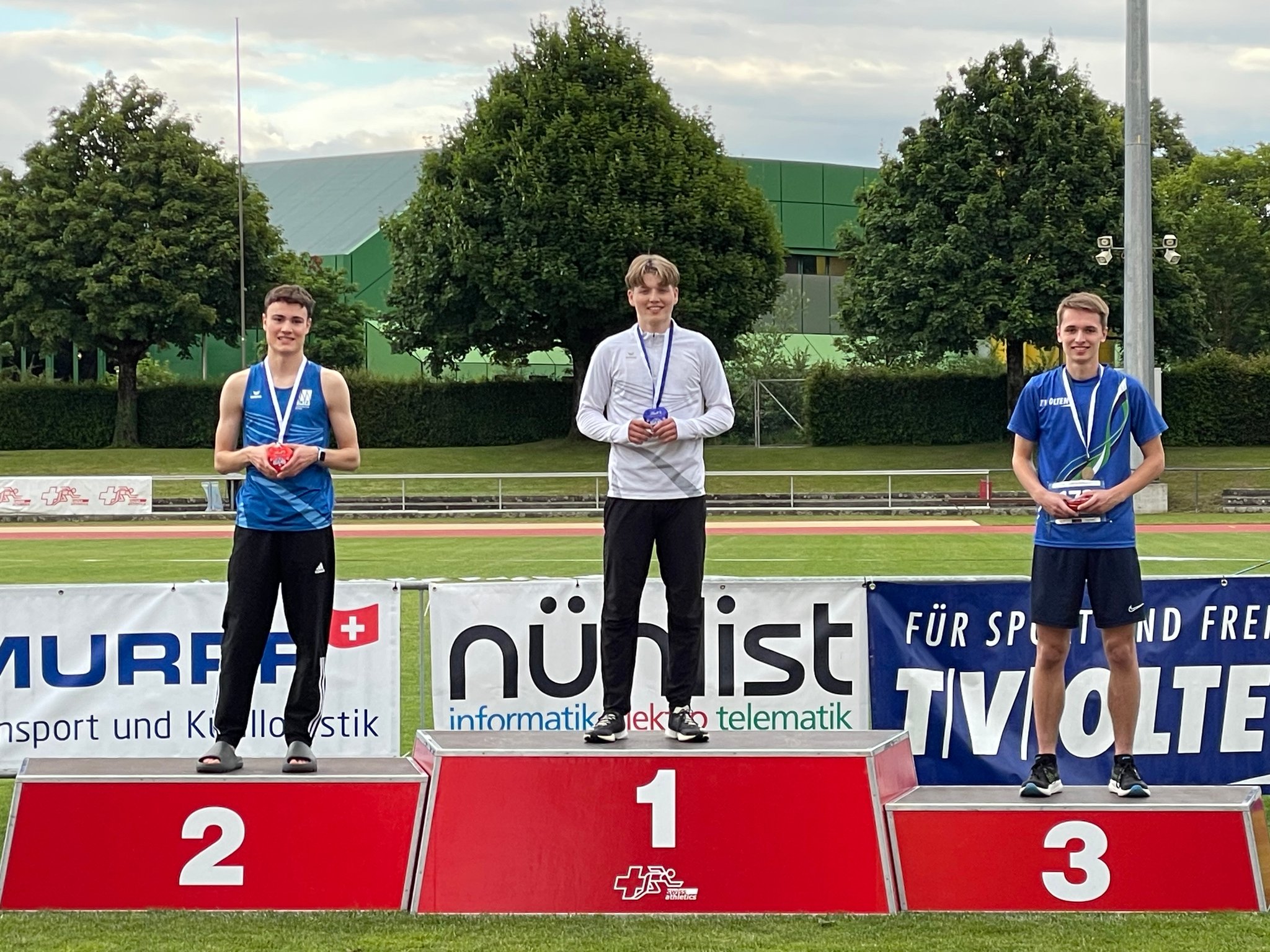 Raphael Brand (U18M-400 m), Leonhard Herrlich (U18M-Diskus), Feline Heemstra (U14W-60 m Hürden), Fiona Sprecher (U16W-600 m), Marvin Gutzwiller (U18M-Stab), Finn Gutzwiller (U14M-Kugel) und Lion Baumgartner (U16M-80 m)
